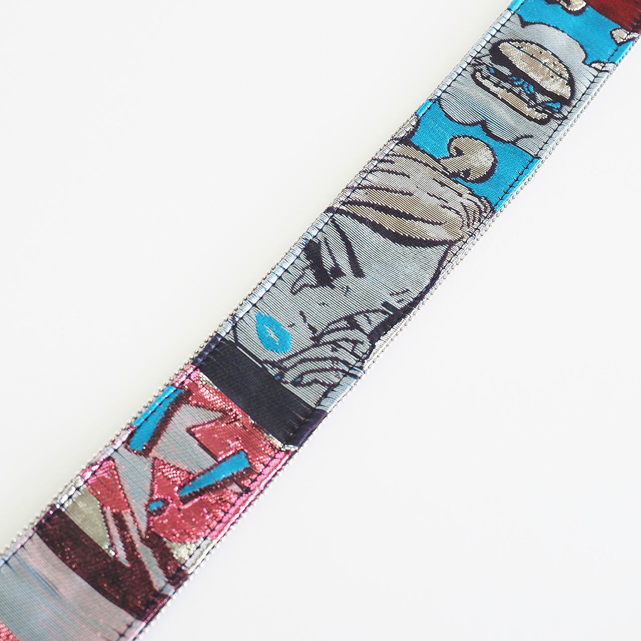 アメコミ柄は配色を抑えたブルーとピンクがメインのカラーで、カラフルなイメージのアメコミ柄が大人っぽく仕上がっています。シルバーラメの糸が所々に散りばめられており、個性的でありながら派手になりすぎず、手に取るだけでテンションアップ間違いなしです。